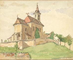Kirche in Raxendorf - Aquarell Bild: Scan Fam. Weiß - Steinschaler Naturhotels Bild darf nur mit klaren und unmißverständlichen Hinweis und Link auf den Urheber und dessen Organisation verwendet werden.